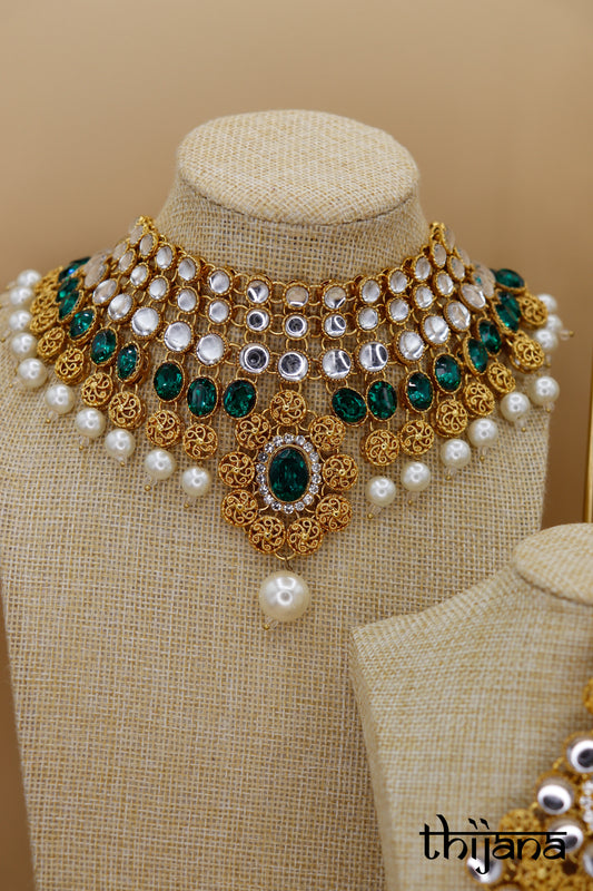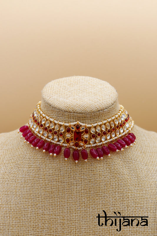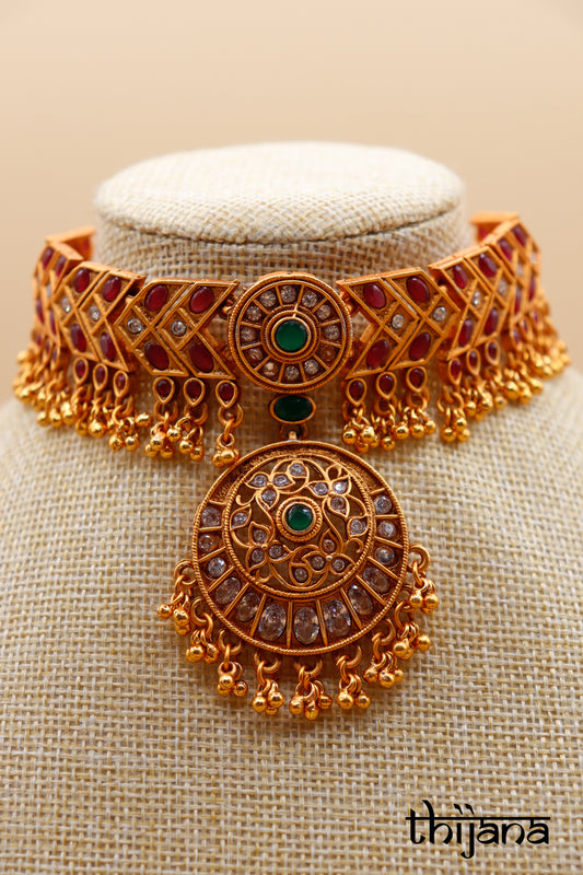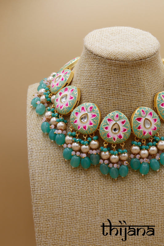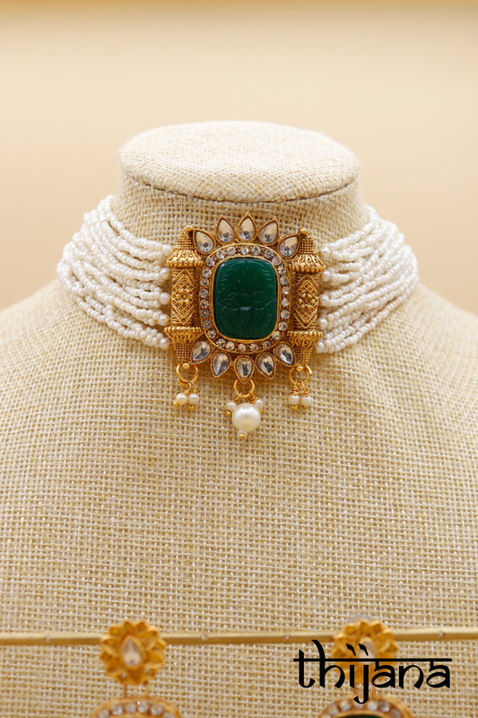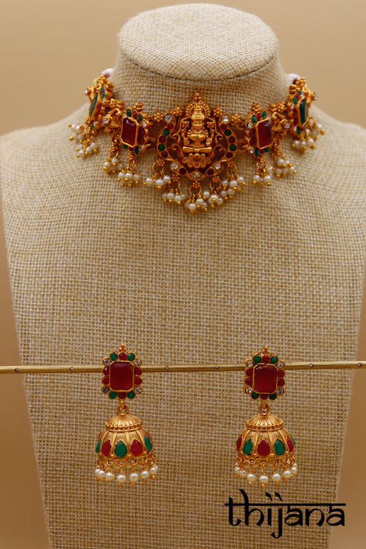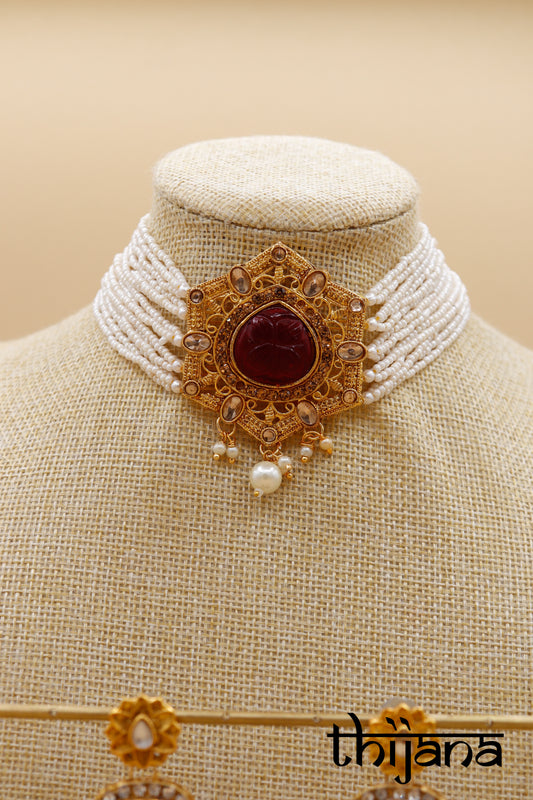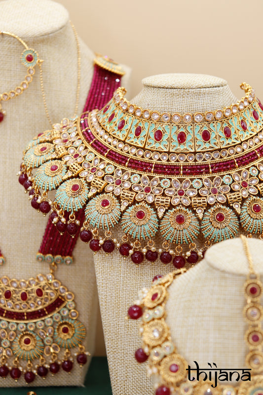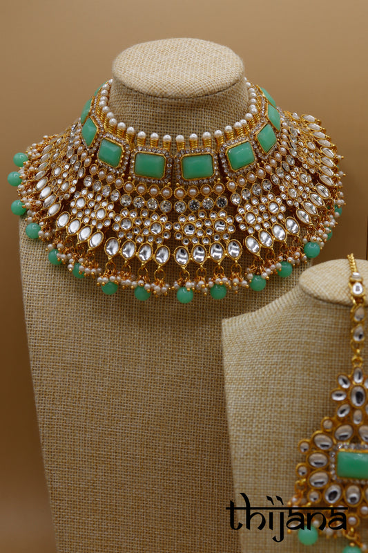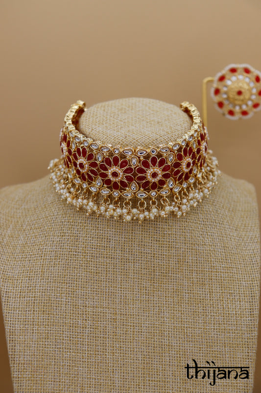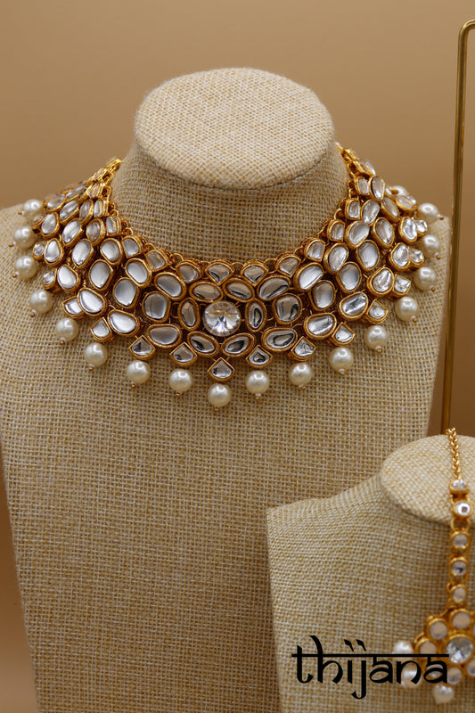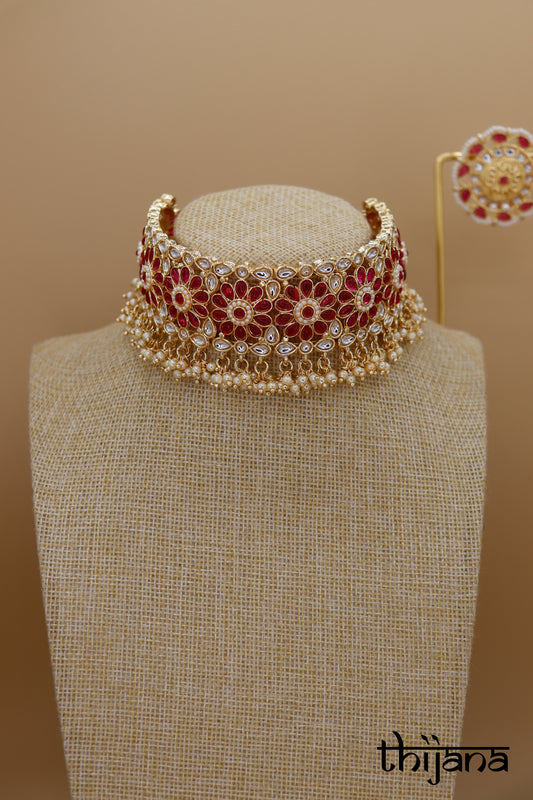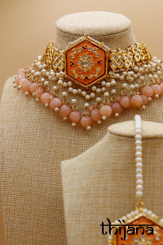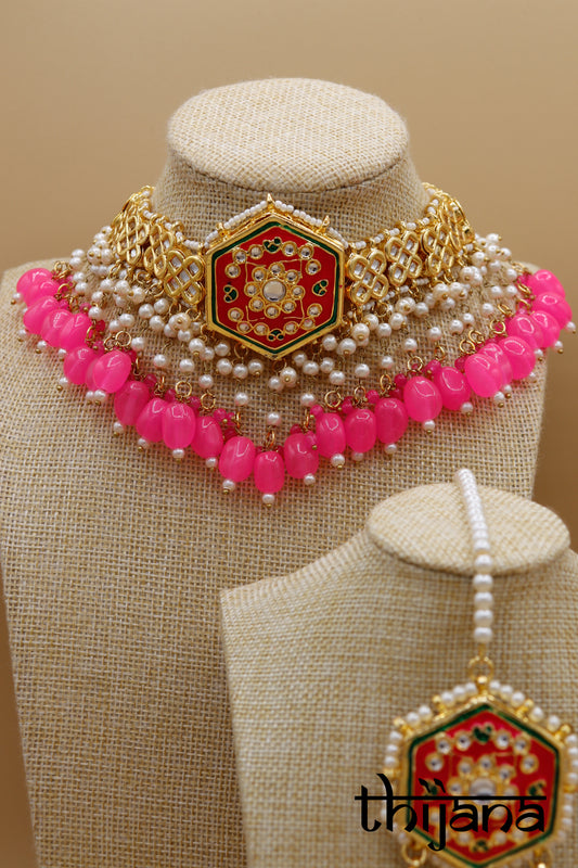 Choker necklace with matching earrings and tikka