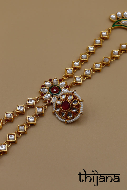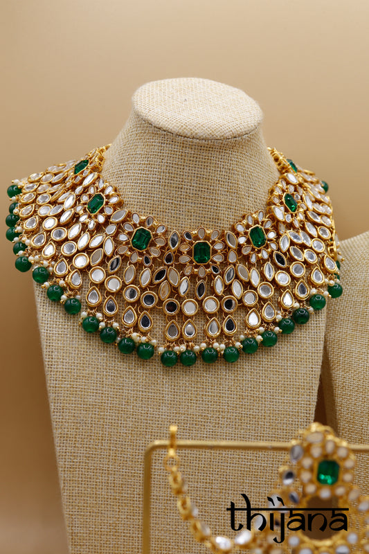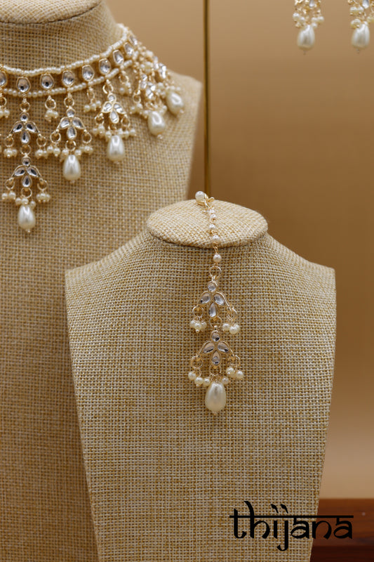 Necklace with matching earrings, maang tikka and pang tikka