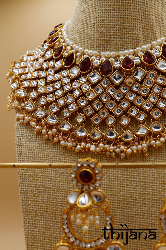 Kundan necklace with matching earrings and tikka
